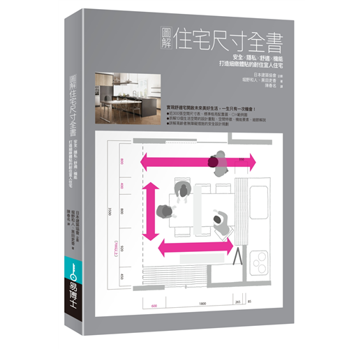 本書將住宅區分為13個空間(玄關、樓梯、廁所、洗臉室、浴室、和室、廚房、餐廳、客廳、主臥室、小孩房、衣帽間、陽台),針對各自空間的機能、配置和重要功能,淺顯易懂地統整出其間的生活行為所應該有的合理尺寸。並特別將高齡者的安全及無障礙設施納入設計考量。是一本針對專業住宅設計者、考慮購買或興建自用住宅人士,對應少子化、高齡化社會相當實用的設計實務參考工具書。