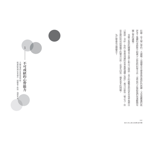 在本書中,作者結合科學研究與真實案例,從改變自己的心理鍛鍊,到改善關係的實際做法,幫助我們克服小對話,發揮最佳實力。你可以學到: