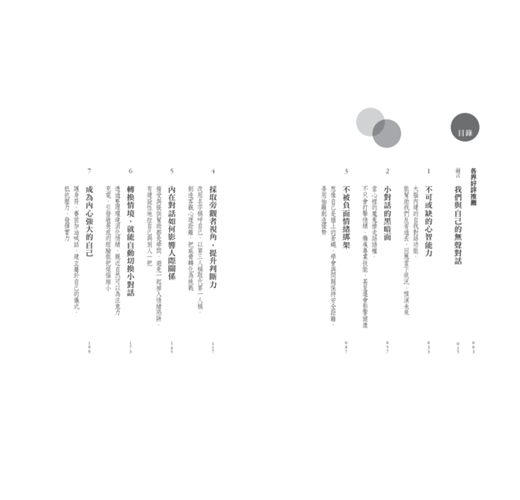 這個在我們腦中不斷來回的自我對話,誰也聽不見看不到,卻牢牢的主宰我們的思緒,深深影響我們的表現、人際關係與生活品質。