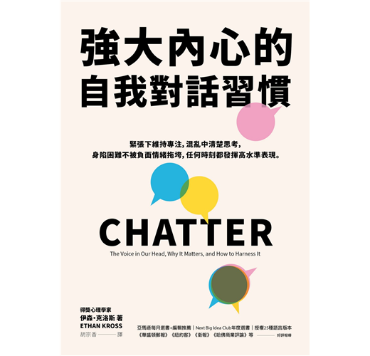 克洛斯寫出了終極之作,告訴我們如何將內在對話從反芻思考和自我批評,轉向自我省思和進步。深刻而實用之作——讓你對自己有新的認識,得到邁向充實人生的新策略。——《什麼時候是好時候》作者品克(Daniel Pink)