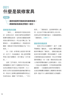 本書針對日常生活中常見的裝修家具,詳述「評估空間條件、繪製草圖與平面圖、估價簡報與報價、繪製施工圖、正式施工、移交維護」的完整流程,並介紹各種材料、塗裝、五金的特性與優缺點,附上各種場景的設計實例。讓使用者(業主)建立充分的知識,具備家具設計的良好概念、了解自己的需求;設計者則可透過本書將專業建議傳遞給業主,形成高水準、有建設性的共識,完成業主與設計者均滿意的作品。