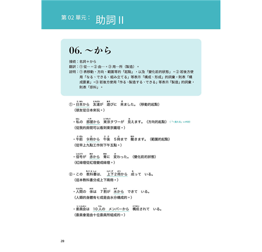 ②學習者最頭痛的助詞,做詳盡解說。了解「格助詞」與「副助詞」的區別,是打好日文基礎的重要關鍵之一。
