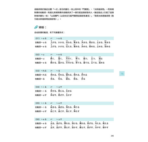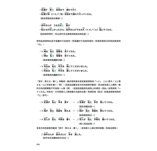 ④自他動詞、授受、使役、被動、敬語等初級學習者最容易搞混的文法範疇亦有詳細解說。