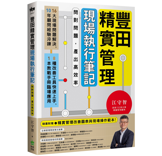隨著第一本書熱賣,守智顧問仍持續挑戰自我,透過輕鬆的筆觸措辭,把過去幾年的輔導精華再一次不藏私揭露,Top-down的逐層解析,從領導⼈該如何打造精實管理團隊,到管理層如何從改善效益四大構面發現問題,再到執行者如何善用工具手法進行現場調查分析,讓讀者知道「豐田精實管理」不再是口號,「現場執行筆記」是帶領我們走進現場的好書。真心向您推薦。