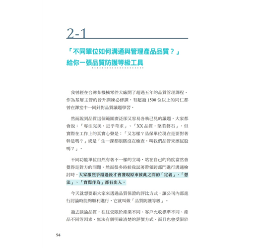 - 2-1 「不同單位如何溝通與管理產品品質?」給你一張品質防護等級工具