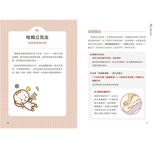 ●最完備!爸媽最想知道的大小事,小孩感發燒、感染、腹瀉、嘔吐、皮膚炎…;異物梗塞、心跳停止、頭部外傷、蚊蟲叮咬、燒燙傷…從頭到腳面面俱到!
