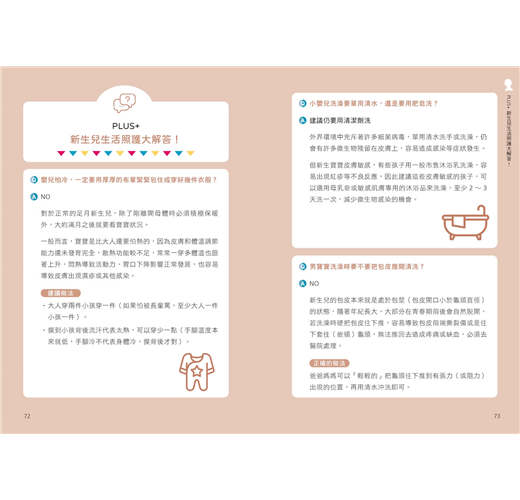 男寶寶洗澡時要不要把包皮推開清洗?/小嬰兒洗澡要單用清水,還是要用肥皂洗?/嬰兒怕冷一定要用厚厚的布單緊緊包住或穿好幾件衣服?/寶寶沒有過敏,為什麼後來還是開始過敏,每天癢癢抓抓呢?/皮膚過敏藥膏大都含有類固醇,小寶寶可以擦嗎?/我的孩子都不吃飯,餵食困難怎麼辦?/寶寶需要定時清理耳垢(屎)嗎?