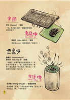 在本書中,我們以桃紅色的套色字表示新創詞彙,這些詞都是我們經過長時間的討論,選擇貼近華語原本意思,但又很有台語味道的講法,說得順、意思也算通。最重要的是,說給高齡九十多歲的阿公聽,他也可以多少理解我們想要表達的意思。或許有些讀者對本書所收錄的新創台語詞有不同的說法或自己的想像,那也是我們最樂見的情況──因為這代表台語的討論是活絡的,如同這幾年的台語創作,無論任何形式都有越來越「豐沛」的趨勢,彷彿在牛肉湯店,老闆突然為你冷掉的湯碗再次加滿熱湯,食慾又再度被打開的感覺。台語的命運好像也是這樣,經歷了不同時代的波折,但因為台灣人與台語人之間的情感,源源不絕地又注入了「熱湯」。
