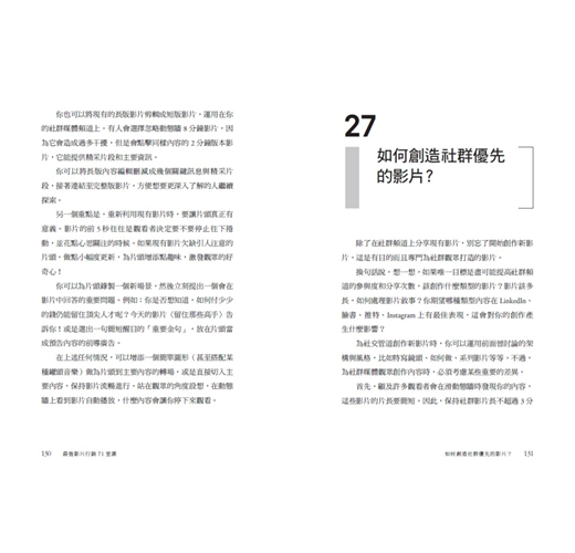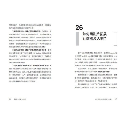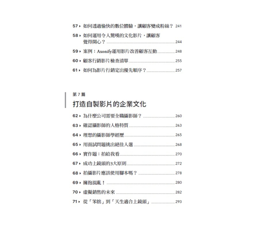 本書提及的問題非常實際,是所有視覺銷售人員都會遇到、心中冒出問號的疑問,作者提出的解決辦法亦十分切實,基本上照著作者建議的步驟便能逐一完成視覺銷售的重點影片囉。