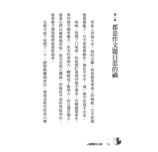 我小時候在收音機旁聽過一個廣播劇,一位英雄少年為了救人,闖入八卦陣。當他發現每跨出一步,就幻化出兩個門,兩步四個門,三步八個門,胡亂走入,就會被困在陣中。因此,他在腳上綁了繩子,匍匐而入;找到朋友,才依著繩索逃出。讀邱靖巧這本小說《小獸醫大志願:關於我這個少年超煩惱的事》,又讓我想起了這樣的環節套路。