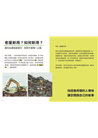 面對舊市區特有人文、歷史紋理,臺北多年來更致力於都市更新「整建維護」與「社區營造」政策的改革,並期望透過更多元的環境再造方式,在延續建築物的生命週期或取得新的空間使用同時,仍能保有在地故事性以及社會網絡間互動的可能性,臺北「老屋新用計畫」即是如此。