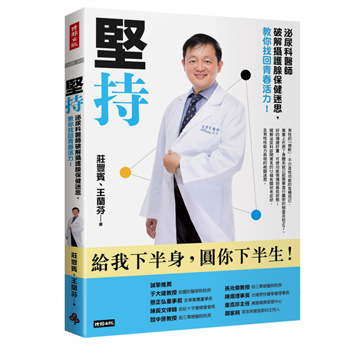 有些煩惱,並不那麼適合跟別人分享,莊醫師在行醫之餘,把自己行醫腎臟及泌尿專科的經驗整理成書《堅持:泌尿科醫師破解攝護腺保健迷思,教你找回青春活力》,提供「男人們」默默求解的管道,是男性朋友的一大福音!