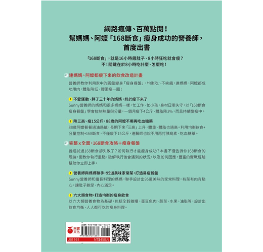 連媽媽、阿嬤都成功甩肉,體脂降低、腰圍瘦一圈!\\ 網路瘋傳、百萬點閱!幫媽媽、阿嬤168斷食瘦身成功的營養師,首度出書 //
