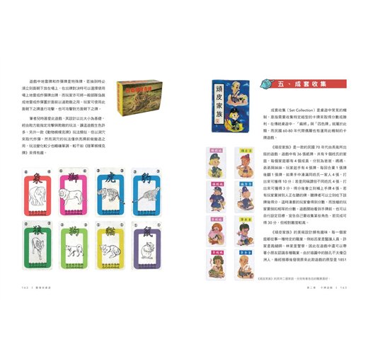 前面提到的賽車紙牌遊戲,我小時候沒少玩過,但從來不知道原來它有一個來自國外的源頭── Touring 紙牌。這類令人驚奇的發現在書中可不少:「幸福人」遊戲代理自美國出版的《Careers》、「李表哥」遊戲盤源自《The Game of Life》、《魔法風雲會》集換式卡牌遊戲在臺灣的源流⋯⋯介宇在書裡娓娓道來,彷彿老友從櫃上將桌遊信手取出,向你訴說它的故事,絲毫不見學者架子。