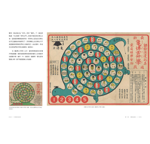 說回介宇的收藏。「能早」、「能廣」是作為收藏者的初步,然而要卓然成「家」,則非有旁徵博引、觸類旁通的研究功夫不可。閱讀本書時,看見整頁的各式桌遊固然令人驚奇,但真正使我佩服的,則是其詳細縝密的研究考證。