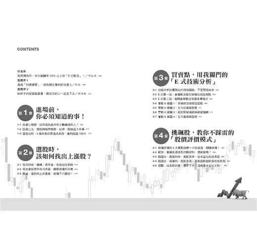 本書共7章的「E式戰法」,總結八年級生E大親身實戰的成長股策略,