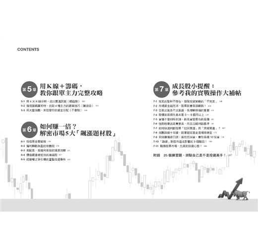 因此本書教讀者:如何先從基本面的選股濾網中找出成長股,接著從技術面箱型理論與籌碼成本,搭配「本益比評價法」,計算出潛在獲利超過+20%的個股,並設定進場的點位(找買點),最後設定停利、停損點 (找賣點、控制獲利和損失),就能確實掌握獲利。畢竟投資是自己的事情,不要總是在等別人的二手明牌。