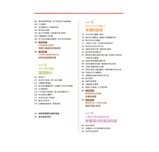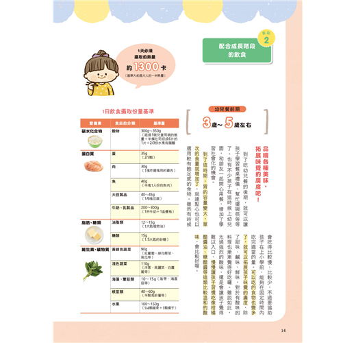 配合孩子成長階段,收錄一天所需熱量的食譜,讓孩子攝取足夠的營養。