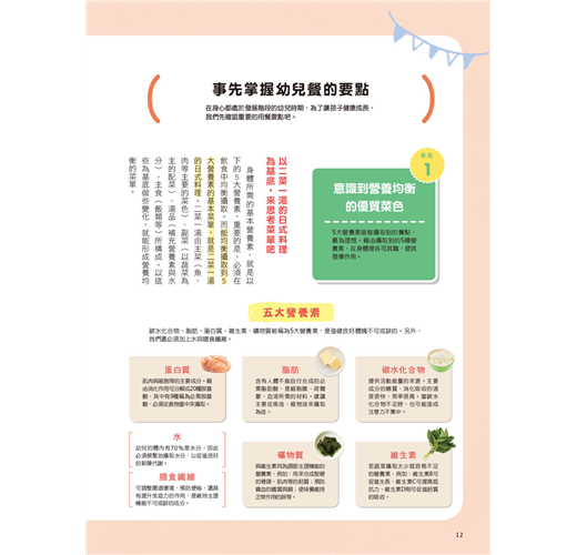 為了讓孩子攝取足夠的營養,製作料理時,需考量到營養的攝取。碳水化合物、脂肪、蛋白質、維生素、礦物質,缺一不可。