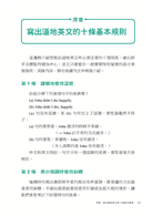 除了英文寫作的基本規則,本書的重點著重於拼字規則、標點符號、特殊符號、文體書寫介紹,並彙整成 317 條規則,詳細解析非母語人士在英文寫作時會忽略的小細節。熟悉了這些在寫作上容易犯的錯誤後,你寫出的作文將會更加容易讓讀者理解,同時也能提升整體作文的層次。