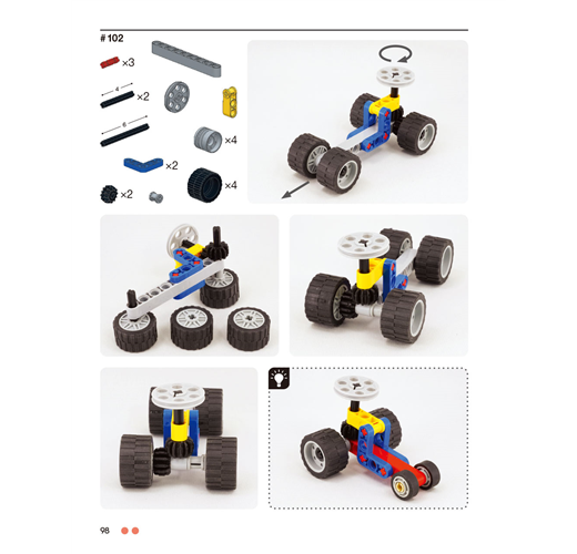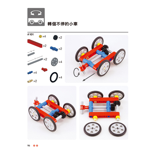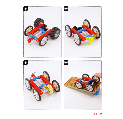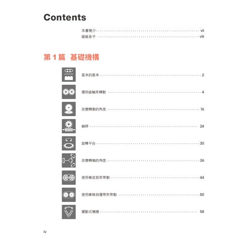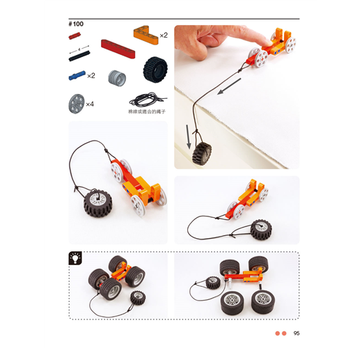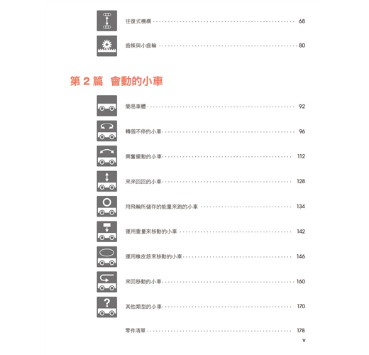 本書精選了141個無須馬達的可愛小裝置,讓您可以親自製作與把玩。每個專題都有不同角度的彩色照片,並標示了所需的樂高科技系列零件幫助您順利完成。各個作品都包含了某種簡易機構,從齒輪的動力與轉動,一直到能自行移動的小車來呈現各種線性、擺動、旋轉與往復式的動作。