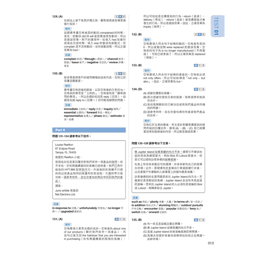 每寫完一回,一定要認真看解析。對的也要看,不對的更要熟記、熟練。訓練每個考生成為多益考試的「解題機器」。