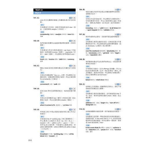 新制多益考試是為了測驗英語非母語人士在國際職場上對英語的熟悉程度,因此掌握一般商業單字、理解最新考試趨勢和出題方向,有助於在多益考試中拿高分。如沒有額外閱讀多益單字書的話,可將每題的補充單字、片語記起來,會有助於之後解答類似題型。