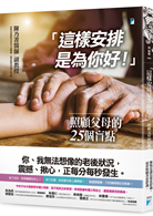 因此,當我看到乃菁醫師的新書《「這樣安排是為你好!」──照顧父母的25個盲點》書稿,內心不知有多麼開心。過去跟照顧者有關的書籍,常常主軸是醫療專業,談要給老年人吃什麼、要怎麼運動、如何才達到無微不至的照顧;不然就是關照照顧者的內心與壓力,描述照顧者面對多少辛苦,要如何紓壓或是處理等等。而乃菁醫師的...
