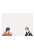 是枝:非常謝謝您。有一點想向您請教,在劇中有一幕邊織著毛線邊對兒子說:「所以我才找他來啊。」的場景,對吧?劇組人員都明白那個場景非常重要,因此靜靜地進行準備、直到正式開拍、喊卡……整個過程都非常平穩、順利。然而看了成品之後,竟意外發現那是一段既完美,又同時傳達出驚悚氛圍的片段,連攝影師山崎先生都說他看得不寒而慄。而且,在那個拍攝希林女士側臉的長鏡頭中,您的眼睛連一次都沒有眨過。那不是您刻意的,對吧?