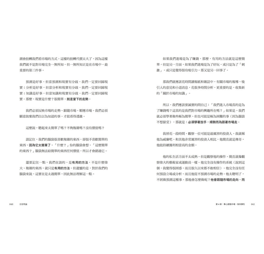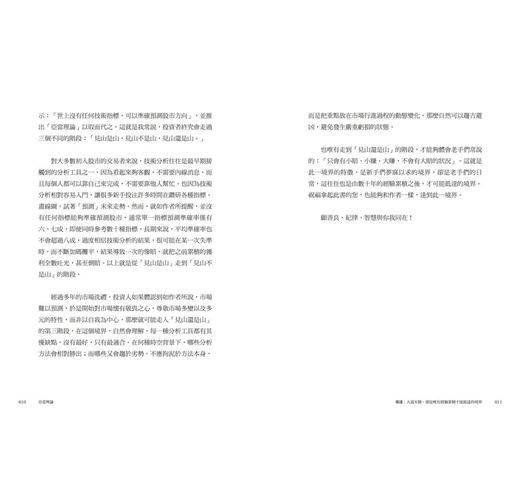 「此書揭示了市場交易者必須要有的基本認知以及進退原則,曾是我交易啟蒙書之一,也值得每一位想要成為傑出交易者的人參考!」──知識交流平台TMBA共同創辦人 愛瑞克