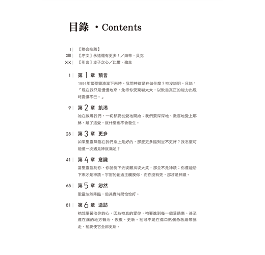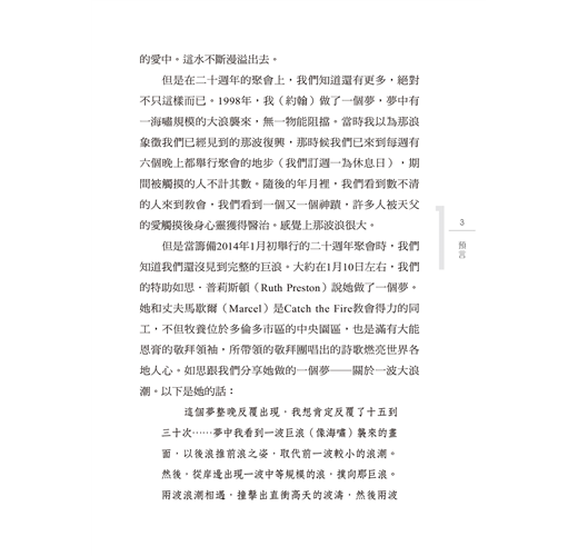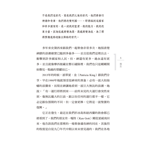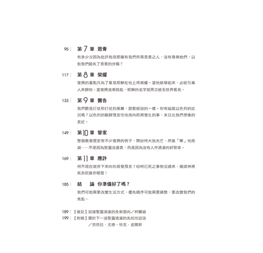 ◎在集體的層次:本書有助於牧師、領袖、和教會社群預備好,站在迎接一波聖靈動工的位置上。
