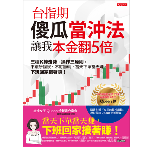 這本書是Queen怜累積8年實戰經驗,整理的台指期傻瓜當沖法,