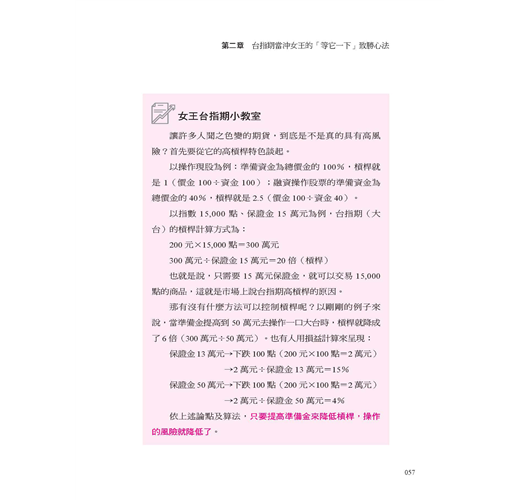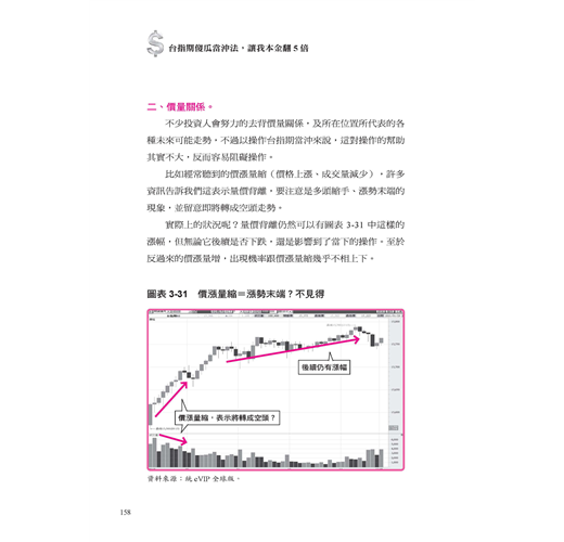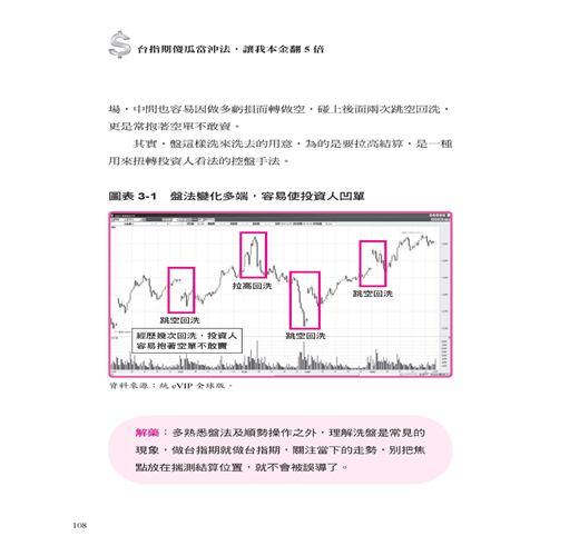 而本書要告訴你,想成為當沖(從當日波動中賺取利潤)的贏家,並非神話。但要先熟悉操作原理,建立該有的原則,那麼操作台指期將會為你帶來樂趣及夢寐以求的績效。