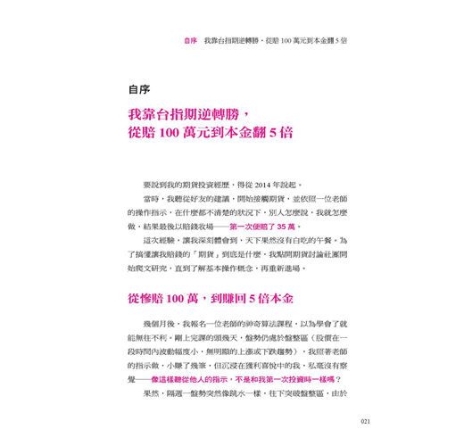 自 序 我靠台指期逆轉勝,從賠100萬元到本金翻5倍