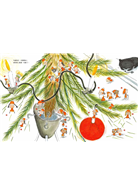 細心的讀者會發現插畫中的聖誕樹及擺飾也不太一樣,瑞典習慣在聖誕樹上掛蠟燭、蘋果、國旗、和稻草紮成的聖誕山羊等。