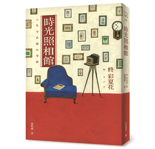 玄關內側,左右對開的門扉大大敞開,可以看到裡面的攝影棚。昏暗燈光下,是拉下的整片背景紙,前方放著一張只有單邊扶手的豪華座椅。相機底座上,還能看見一台大型蛇腹相機。底座或相機本身,都是結實的木頭材質,由於尺寸比成人環抱還要大,常讓訪客發出「好厲害...