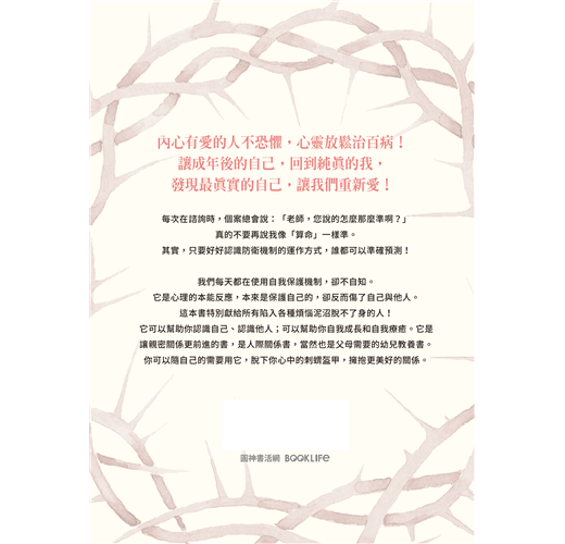 它可以幫助你認識自己、認識他人;可以幫助你自我成長和自我療癒。它是讓親密關係更前進的書,是人際關係書,當然也是父母需要的幼兒教養書。