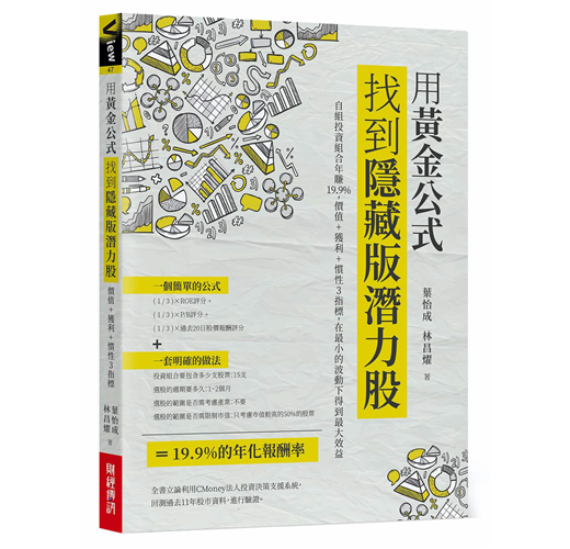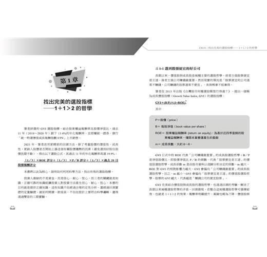 作者在2014年出版的《誰都學得會的最強選股公式GVI:每月選股1小時,勝過每天盯盤8小時。股市新手平均報酬15%!》。提出成長價值指標(GVI),以股東權益報酬率及股價淨值比兩項指標,來選擇股票。