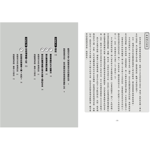 本書靈訊表面是無極瑤池金母從各種面向解析「新型冠狀病毒」,實際上,每一則靈訊夾帶著多重神諭與靈性啟迪—靈魂意識的覺醒、修正校對靈魂意識、提升靈魂意識進入更為純粹的意識層、調整意識頻率因應外界變化……。此書內容以靈訊為皮、靈魂意識為骨,從中挖掘內在更深一層的個人靈魂修練,這是此書的架構。