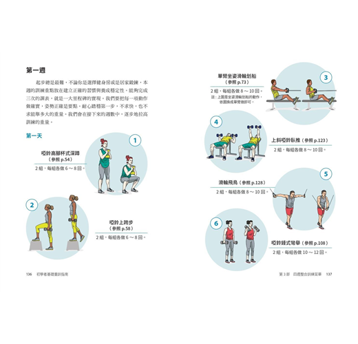 設定4週的初學者訓練計畫,按表訓練就能打好重訓基礎,還可以依個人的進度,將基礎動作換成進階訓練,增加訓練強度。