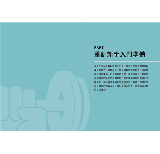 市面上有許多介紹重訓的相關書籍,本書是專為初學者所設計的入門書,我們會從頭開始講起,把基礎打穩,無論你的年齡或是身體狀況,開始重訓就不嫌遲。