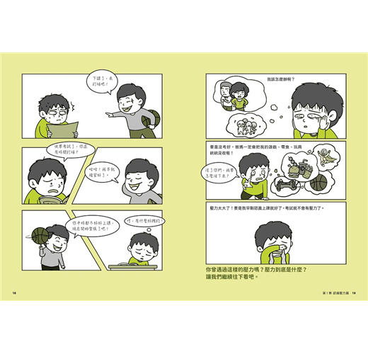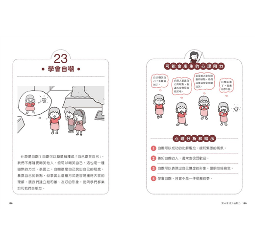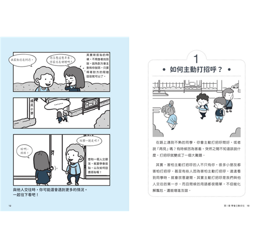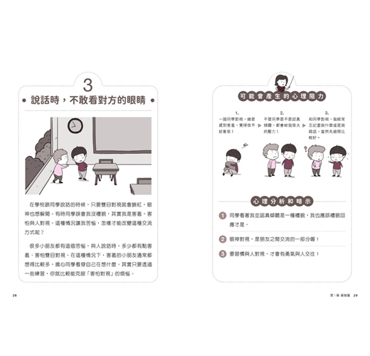 用趣味漫畫還原內心情境,以淺顯語言引導技巧練習