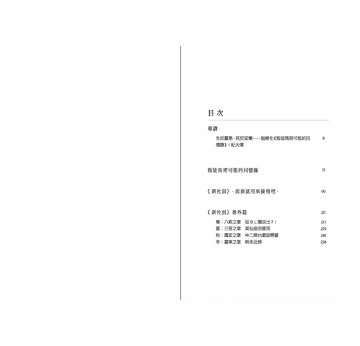 讓他相信恨著,也可以得到什麼永恆不變的東西,再來談愛吧。劇作家簡莉穎的劇本集之三,全書收錄《叛徒馬密可能的回憶錄》及《新社員》本傳與番外篇四輯,展示出簡莉穎近年創作上對於性別的多元樣貌,與劇場形式的大膽嘗試。