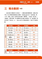 「文字、語彙」細分為和語篇及音讀漢字篇,不僅用音節數及按五十音分門別類,相似動詞中還加上例句,讓您能在最短時間內,分辨單字間的不同,進而抓住快速解題的訣竅!「和語篇」分成七部分,分別為一、訓讀名詞,二、和語動詞,三、複合動詞,四、形容詞,五、副詞,六、外來語,七、接續詞,幫助讀者平日背誦以及考前總複習,只要記住這些語彙,不僅「文字‧語彙」相關考題可以拿到滿分,亦有助於理解「讀解」之文章。請搭配MP3音檔學習,效果更佳。
