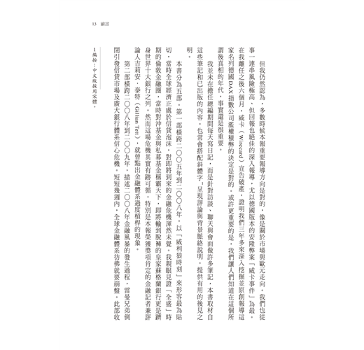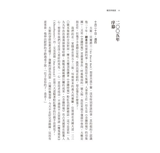 出自世界上最知名的記者,此書必讀。你會在書中遇到國際金融、政治和媒體領域的關鍵人物,看到他們是誰,以及他們在壓力底下的想法。書一旦翻開,真的停不下來!——蘇世民(Steve Schwarzman),黑石集團董事長兼執行長,著有What It Takes: Lessons in the Pursuit of Excellence