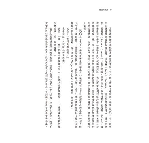 我並未在擔任總編期間每天寫日記,而是針對訪談、聊天與會面做許多筆記,本書取材自這些筆記和已出版的內容,也常會搭配斜體字呈現評論與背景脈絡說明,提供有用的後見之明。