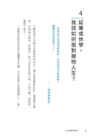相信這本書能為你們解惑,讀完後從中獲得面對苦痛的動力,和尋回自我生命價值的希望。