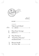 但現在,我想告訴你,若你讀到此處,覺得自己是象徵性的赤身裸體、被困住,你並不孤單。實際上,這可能是個跡象,表明你發現了某些非常好的事。(但是,若你真如「字面上」所言,赤身裸體且受困,我祝福你把這本書燒掉的決定,為你要求救的煙霧信號添加燃料。)