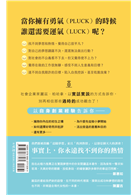 畢竟,當你擁有勇氣(PLUCK)*的時候,誰還需要運氣(LUCK)呢?許多初生之犢缺乏經驗、成敗的紀錄、專業知識和人脈,但他們有膽量、好奇心、精神、勇氣,且願意承認自己還沒有完全理解狀況,如此便彌補了這些不足。事實證明,這些特質非常有益於建立有目標、有熱情、有影響力的生活。