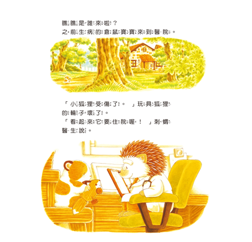 某天,刺蝟醫生在森林裡遇到了一隻小幽靈,發現原來是某隻小動物裝扮的,而且還意外發現他的小秘密唷!後來刺蝟醫生想到辦法不但幫助森林裡生病的小動物們,還讓這隻可愛又害羞的小幽靈覺得心滿意足唷!,